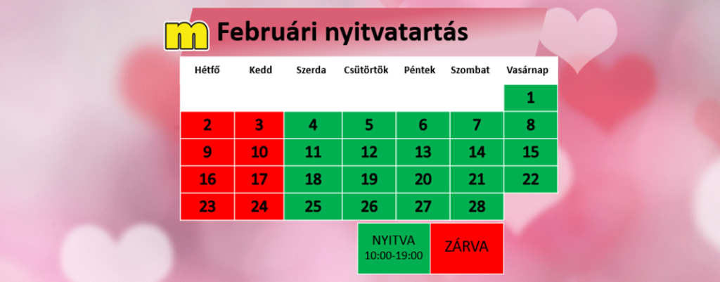 AKTUÁLIS NYITVATARTÁSUNK A FENTI HAVI NAPTÁRBAN LÁTHATÓ.